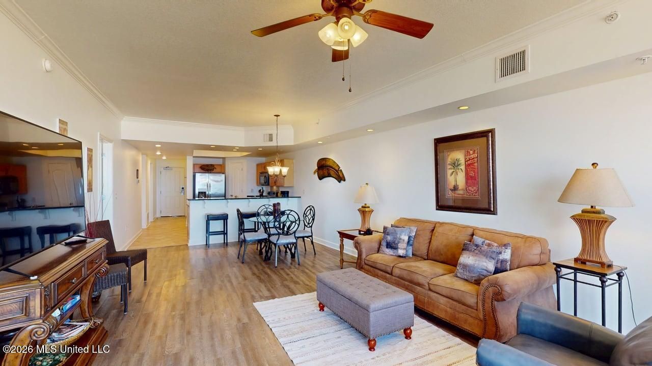 Welcome to luxury coastal living at Sienna on the Coast! This beautifully appointed 2-bedroom, 2-bathroom condo offers 1,277 square feet of comfortable living space on the 5th floor, perfectly positioned to enjoy stunning Gulf Coast views and refreshing sea breezes.Step inside to discover an open and inviting floor plan designed for both relaxation and entertaining. The spacious living area flows seamlessly into the dining space and well-equipped kitchen, featuring ample cabinetry, generous counter space, and a breakfast bar perfect for casual dining. Large windows and balcony access fill the condo with natural light while showcasing beautiful coastal scenery.The primary suite offers a peaceful retreat with private balcony access, a spacious layout, and an en-suite bathroom featuring double vanities, a jacuzzi tub, and a separate shower. A second bedroom and full bath provide comfortable accommodations for guests or family.This condo is not only a wonderful personal getaway but also a fantastic income-producing investment property. Located in one of the Mississippi Gulf Coast's premier beachfront communities, Sienna on the Coast residents and guests enjoy amenities including a gated parking, beachfront access, resort-style pools, a fitness center, and beautiful grounds. Conveniently located near dining, entertainment, casinos, and shopping, this condo offers the perfect combination of relaxation and investment potential.Whether you're searching for a vacation getaway, full-time residence, or proven rental property, this exceptional condo at Sienna on the Coast delivers the best of Gulf Coast living. Schedule your private showing today!
