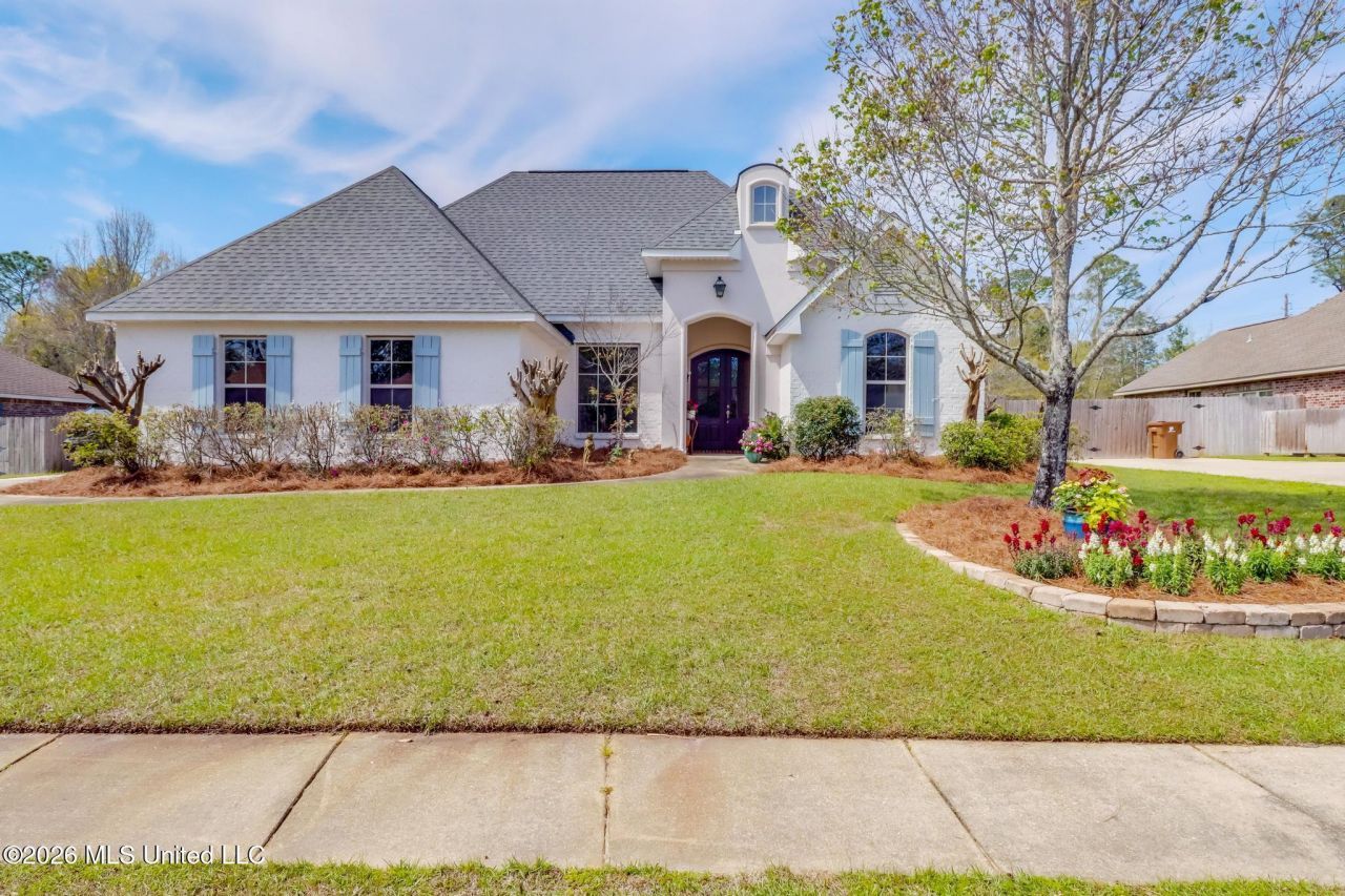 Enjoy the serenity of this beachside community. A short walk to the beach.One look at this gorgeous, beautifully appointed home, and you will fall in love with it. Pride of ownership is displayed everywhere. It has been updated to make the effective age almost new. Walking through the covered entryway into the graceful foyer, you will embrace the flowing floor plan with high ceilings and exquisite crown molding anchored down with hardwood flooring. Flowing from the foyer is a beautiful dining area, music room or study, and a large family room flanked by a gas fireplace with built-in shelving. Step into the magazine-like kitchen with granite countertops, an island, a pantry, a gas-topped stove, and stainless steel appliances. The adjoining dining area boasts a high ceiling and is big enough for a table that accommodates 10 diners. The master suite has a lighted tray ceiling, ceiling fan, separate shower, double sinks, granite counters, a large closet, and a garden tub. The Good-sized secondary bedrooms have ceiling fans. One of the bedrooms would make a great study with fabulous custom built-ins. The privacy-fenced backyard oasis has a gunite-built-in pool, cool decking, covered patio, and pergola sitting area. The spacious laundry room has storage shelving, a sink, and a folding area. The perfect split-bedroom plan includes a separate guest suite with a desk area. There is also a side entrance garage and neutral colors throughout. Long Beach boasts the number 1 school district in the state, is named the friendliest and safest city in the state, and was named one of the top 10 beaches in the US. Only about an hour's drive to New Orleans and Mobile. So convenient to golf, gaming, and the gorgeous Gulf Coast beaches. The Award-winning dining, entertainment, shopping, festivals, and weekend markets will always give you something to do.
