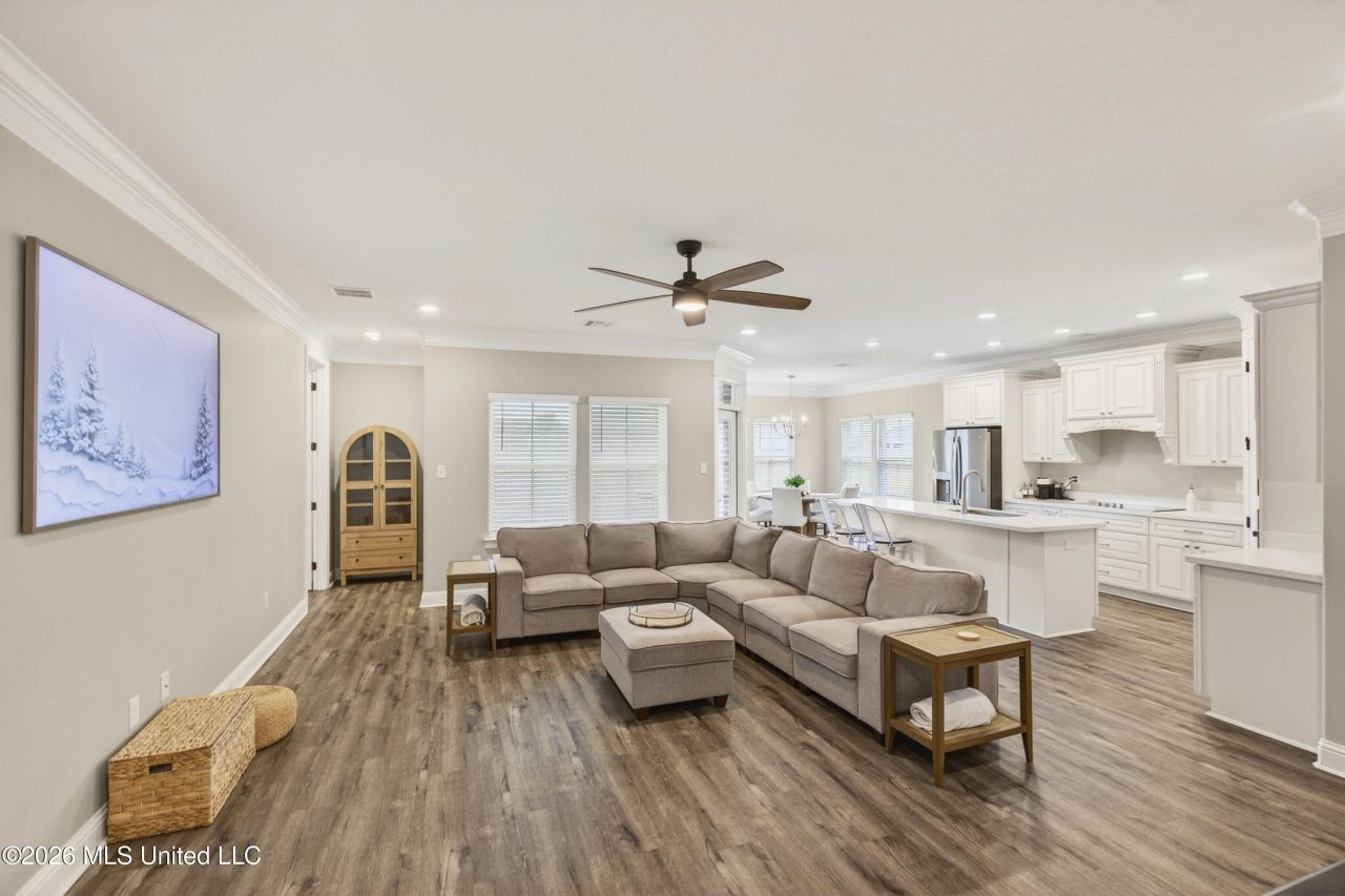 Welcome to 6726 Maurepas Circle in the heart of Ocean Springs! This spacious 5-bedroom, 3-bathroom home offers a thoughtfully designed layout perfect for today's lifestyle. The main level features a private owner's suite along with three additional bedrooms, providing plenty of space for family or guests.Upstairs, you'll find the ideal in-law or guest retreat complete with a private bedroom, full bath, and its own living area; giving everyone room to spread out and enjoy their own space. There's also a versatile bonus room that makes the perfect media room, playroom, or entertainment space.The fully fenced backyard offers privacy and room to relax or entertain. Inside, thoughtful upgrades elevate the home, including added ceiling fans, TV outlet placements for clean, wire-free mounted televisions, and custom shelving in the spacious owner's closet for optimal organization.This home combines functionality, comfort, and smart upgrades; all in a desirable Ocean Springs location. Schedule your private showing today!
