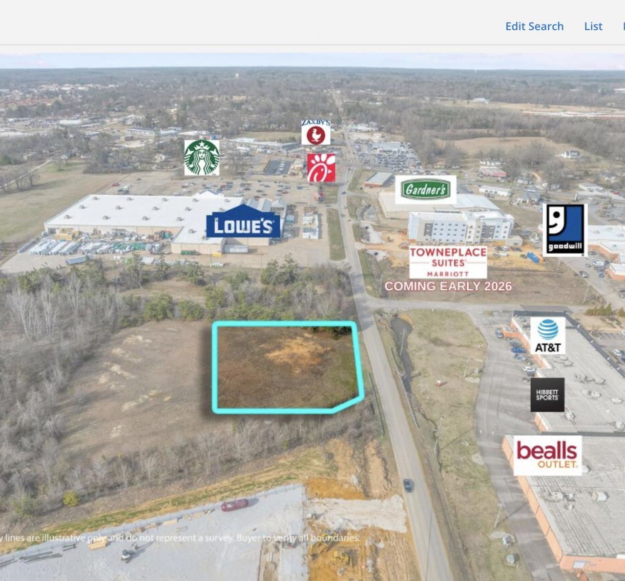 This PRIME COMMERCIAL lot is centrally located in the midst of the hottest commercial area in Corinth Real Estate. It's located next door to Lowe's, the Marriott hotel (opening in 2026), just 2 doors down from Chick-Fil-A and a par 5 from Wal-Mart! Take this opportunity to get your business a front row seat!